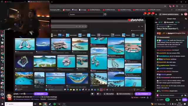 01:11:45Es wurde über mögliche zukünftige Reiseziele diskutiert. New York im Frühjahr wurde als erstrebenswertes Ziel genannt, um dort gemeinsam Vlogs zu drehen. Auch Thailand wurde von einem der Streamer als Wunschziel genannt. Des Weiteren wurden exklusive und teure Destinationen wie Bora Bora und die Malediven ins Gespräch gebracht, die vor allem als romantische Resorts beschrieben wurden. Während Bora Bora als futuristisch und teuer galt, waren die Meinungen über die Malediven geteilt. Einmal wurde der Aufenthalt als langweilig und isoliert beschrieben, ein anderes Mal als wunderschön und ideal zum Abschalten.