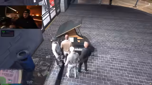 04:24:35Die letzte große Aktion des Abends ist der Aufbau der 'Vitrine'. Nachdem die Lieferung unglücklich im Tiefgaragen-Zugang stecken geblieben ist, versucht man verzweifelt, die Kiste in Position zu bringen. Die Anweisungen sind unklar, und die Handlungen der involvierten Charaktere sind wirr. Die Prozedur endet im Chaos und wird abrupt abgebrochen. Ein Charakter gibt an, 'Hausgebot bekommen' zu haben, und der Stream verlässt offiziell das Geschehen, das unaufgelöst bleibt.