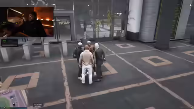 05:05:43Bei einem Streit im Bereich "Bennys" wird eine Granate geworfen, was zu einer Explosion und Verletzungen führt. Der Streamer, der sich im MD aufhält, wird beschuldigt, die Granate geworfen zu haben. Er betont, selbst Opfer zu sein und nichts damit zu tun zu haben. Die Polizei verdächtigt ihn und es kommt zu einem tumultartigen Gespräch. Der Vorwurf des illegalen Sprengstoffs und der Mitgliedschaft in einer kriminellen Organisation wird erhoben, woraufhin der Streamer in Untersuchungshaft genommen wird.
