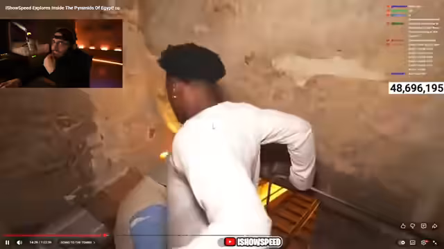 03:35:15In einer Übergangsszene wird ein Live-Besuch in den Pyramiden von Gizeh angespielt, in dem der Reisende Roofless (wahrscheinlich der entführte Youtuber) von innen streamt, obwohl das Internet dort schwach ist. Die Diskussion geht um die historische Bedeutung (ca. 4.600 Jahre alt, gebaut für Pharao Cheops), die Größe und Labyrinthgänge der Pyramiden. Es wird spekuliert, ob Mr. Beast oder andere bekannte Personen durch diese Gänge gelaufen sind. Die Szene wird als kühne Live-Aufnahme von einem ungewöhnlichen Ort gelobt und mit der vorherigen Kran-Extremsport-Sequenz kontrastiert.