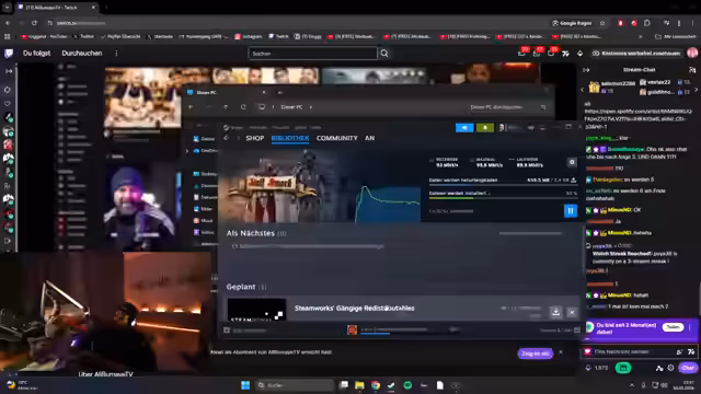 00:03:06Zu Beginn des Streams treten sofort erhebliche technische Schwierigkeiten auf. Der Streamer ist offensichtlich frustriert, da er ein Spiel herunterladen wollte, aber der PC plötzlich ausgeschaltet ist. Nach einem Neustart startet er das Spiel, das zu dritt gespielt werden soll, und er versucht, die anderen Spieler zu einer Runde zu bewegen, während er auf die Beendigung des Downloads wartet.