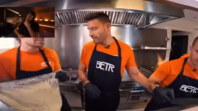 00:22:15Nach der Besprechung des Rhinos-Videos, in dem Saschas Burger-Laden zerstört wird, kündigt der Streamer eine Kooperation an: Für einen Tag übernehmen sie die Leitung des Better-Burger-Ladens in Hamburg. Die Vorbereitungen finden in einer Ghost Kitchen für Lieferando statt, mit Erwähnung der Lieferlogistik und der Partnerschaft mit dem Koch Paul Frege. Es wird deutlich gemacht, dass das Team unter Zeitdruck steht, um das Geschäft erfolgreich zu führen.