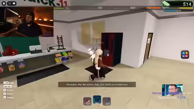 01:58:03Nach der Panzererkundung wechselt der Stream zu einer Roblox-Session. Es kommt zu interaktiven Momenten mit anderen Spielern, die über Skins, In-Game-Käufe und Erlebnisse diskutieren. Der Streamer zeigt verschiedene Features des Spiels, interagiert mit Zuschauern und reflektiert über Gaming-Erfahrungen. Es entstehen humorvolle und manchmal chaotische Szenen mit anderen Avataren.