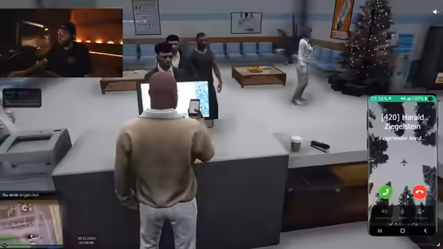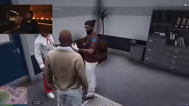 10:22:39Der Stream beginnt mit der Absprache, sich im MD (Medical Department) zu treffen. Es geht um die Beschaffung von Geld für eine Person, um eine Abschiebung zu verhindern. Der geplante Treffen mit einem Albaner entfällt, da dieser keinen Bock hat. Ein Herr West wird kontaktiert, um eine Therapie zu vereinbaren, die jedoch erst nach der aktuellen Angelegenheit stattfinden kann. Es wird die Fahrt mit einem Taxi in Aussicht gestellt und die Suche nach einem weiteren potenziellen Begleiter thematisiert.