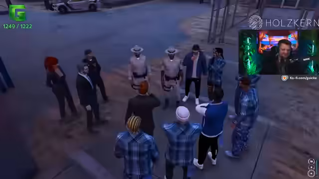 01:07:01Ein Großteil des Streams ist von einer fiktiven, improvisierten Szenerie einer Verbrecherorganisation geprägt. Themen sind Preisdumping bei der Vermietung von Apartments, interne Konflikte, die Anschaffung neuer Fahrzeuge wie einer S-Klasse, und die Beilegung von Fehden. Es werden Organisationen wie 'Blau' und 'Das alte Blau' erwähnt, sowie die Notwendigkeit, die Kontrolle über bestimmte Stadtgebiete zu behaupten. Diese Geschäfte werden als strategische, aber auch riskante Aktionen dargestellt.