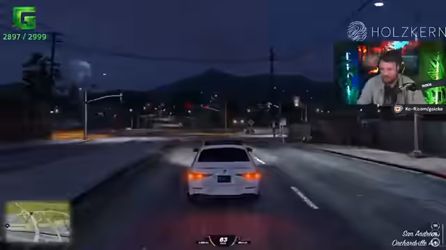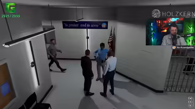01:40:05Der Streamer wechselt zu einem fantasievollen, spielerischen Segment, in dem er als fiktiver Charakter namens Herr Blöckler agiert, der bei den Nachbarschaftsdiensten angestellt ist. Er interagiert mit Chat-Mitgliedern, die ebenfalls Rollen einnehmen, wie Herrn Bennett vom LSPD, um ein gestohlenes Fahrzeug zu orten, das sich tatsächlich bei einem Performance-Tuner befindet. Dies ist ein Teil eines größeren RPG-Szenarios, das in der Community läuft. Im weiteren Verlauf des Spiels geht es um den Wiederaufbau einer Gang („Kelle“), die sich vom DOJ in die Werkstatt zurückzieht. Es werden Verträge und „Aufträge“ verteilt, um die Position der Gruppe zu stärken und Allianzen zu knüpfen.