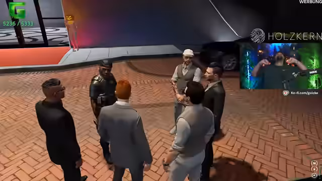 06:38:29Der Streamer berichtet über den aktuellen Stand der Aktivitäten auf der Insel Kayo. Sein Team hat Waren verkauft, Fernseher und Dekoration angeschafft und die dortige Gang mit Drogen versorgt. Es gab eine blutige Schießerei zwischen rivalisierenden Gangs, was zu einer Aufrüstung der Grove führt. Zudem wurde jemandem von der Polizei geflüchtet und nach Kayo gebracht, wobei die Identität der Person noch erforscht wird.