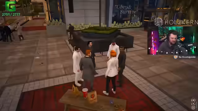 05:45:31Es findet ein Waffenhandel statt, bei dem verschiedene Koffer wie MP-Koffer und Revolver-Koffer verkauft werden. Die Preise werden genannt und über Unterschiede diskutiert. Gleichzeitig gibt es Spannungen mit der Gang Terminus, die sich respektlos gegenüber dem Streamer verhalten haben soll. Infolgedessen plant er eine Gegenaktion und droht damit, ein Altersheim für Slater zu errichten. Auch ein roter Pickup wird erwähnt, der möglicherweise von einer rivalisierenden Gang verfolgt wird.