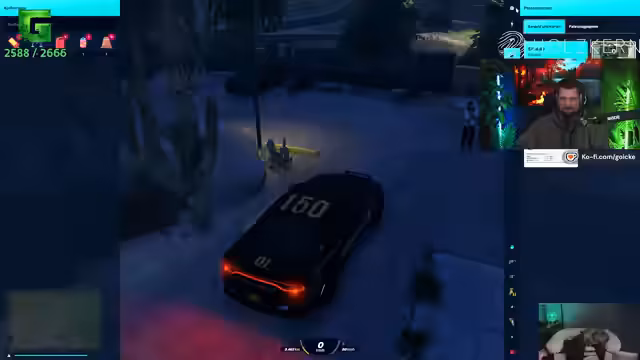 02:38:07Ein großer Teil des Streams besteht aus Fahrten mit der Polizei. Der Streamer und sein Kollege patrouillieren durch die Stadt, reagieren auf Notrufe und führen Ermittlungen durch. Sie beschreiben ihren Einsatzort detailliert und spielen ein "GTA Geoguessr"-ähnliches Spiel, indem sie versuchen, sich auf der Karte zu orientieren. Der Fokus liegt auf der Realitätsnähe der Streifenfahrten und der Koordination mit dem Dispatcher.