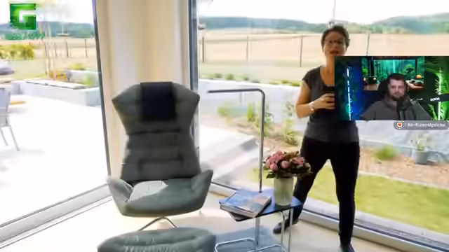 01:50:31Der Streamer präsentiert eine Haustour für einen geplanten Bau oder Kauf. Es handelt sich um ein stylisches Einfamilienhaus von Fingerhaus mit klaren Linien, großen Fensterflächen und viel Komfort. Das Haus hat eine Wohnfläche von 197 Quadratmetern auf zwei Ebenen und ist mit einer Doppelgarage versehen. Besonders hervorgehoben werden die modernen Fenster, die Putzfassade in einem hellen Farbton sowie die Anthrazit-Farben der Blecharbeiten. Es wird erwähnt, dass das Haus erweiterbar ist, falls in Zukunft noch Kinder hinzukommen.