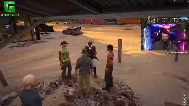 02:05:48Es wird überlegt, die Trabrennbahn hinter dem Casino für Events wie Crash-Derbys zu nutzen, bei denen Schrotflinten erlaubt wären. Ein Mitarbeiter hatte angemerkt, dass etwas aus dem Auto des Streamers entwendet wurde, genauer gesagt 50 Ruby Dust aus dem Kofferraum, die nach einem Unfall auf dem ACLS-Hof verschwanden. Der Arzt vermutet, dass es sich um eine Uhr handelte, für die der Streamer 70.000 erhalten könnte. Es gab eine Andeutung, dass der Mitarbeiter das Geld zurückgeben möchte. Bezüglich der Auszahlung sagt er, dass die Mitarbeiter von uns Geld bekommen. Außerdem wird über eine Funk-SMS informiert, um die Kommunikation zu erleichtern. Ein ATM muss angeschlossen werden, und Gordon kümmert sich darum. Der Streamer und Gordon haben ein Zelt mit zwei Feldbetten bekommen, das Pedro ihnen gegeben hat. Am Airfield wurde ein riesiger Supermarkt aufgebaut, in dem sich auch der ATM befindet. Firedis hat einen Revolver an einen Zivilisten verkauft.