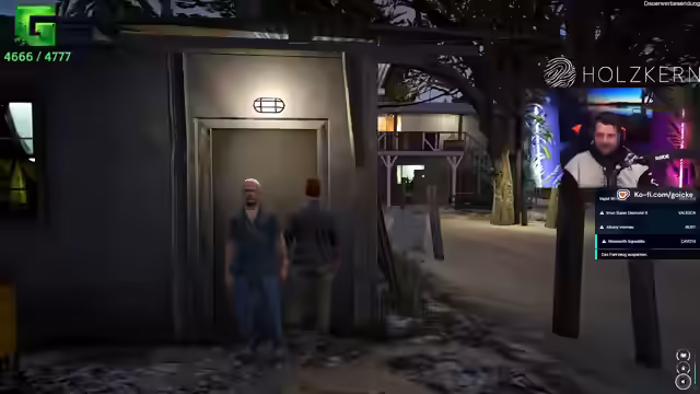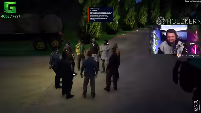 04:00:38Es wird ein Anruf getätigt, um zu überprüfen, ob ein Fall eröffnet wurde, weil ein Fahrzeug entwendet wurde. Es wird die Sorge geäußert, dass mit dem Fahrzeug möglicherweise Unfug getrieben wurde. Nach Vorlage eines Personalausweises wird festgestellt, dass aktuell kein Fall besteht. Anschließend wird ein Praktikant im Polizeidienst befragt und dessen Wissen über Geschwindigkeitsbegrenzungen und Verhalten bei einer Waffengefahr getestet. Es folgt eine Diskussion über Baumfällarbeiten, die dem Streamer angelastet werden. Es wird argumentiert, dass die Landschaft nun blöd aussieht, da man so weit gucken kann. Der Streamer äußert seinen Hass auf die Natur und den Borkenkäfer. Es wird nachgefragt, ob etwas Sinnvolles mit dem Holz gemacht wurde, woraufhin der Streamer scherzhaft antwortet, er habe Zahnstocher daraus machen und kleine Häuser damit bauen lassen, die er dann angezündet habe. Abschließend wird ein kurzer Austausch über Kaminholz und Pellets geführt.