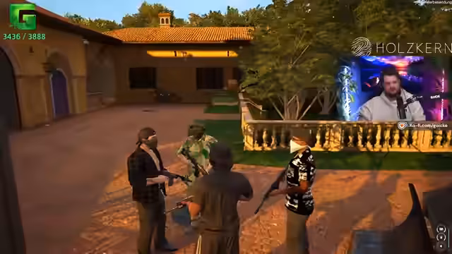 00:39:40Es gibt schlechte Nachrichten: Zwar wurde Geld gescammt, aber es besteht der Verdacht, dass die Gruppe verfolgt wird, möglicherweise durch einen Helikopter mit Kajo-Kennung. Es wird vermutet, dass alles, was von Kajo ausgeht, getrackt wird. Der Helikopter soll mit einer Los Santos Kennung organisiert werden. Es wird überlegt, das Handy einzuschalten, um Gewissheit zu haben, aber die Angst vor der Verfolgung ist groß. Es wird beschlossen, sich um die Verfolger zu kümmern. Die Banks-Brüder treffen ein und berichten von einer Verfolgung durch ein Vitol. Es stellt sich heraus, dass sie sauer sind, weil Hubschrauber abgeschossen wurden. Die Masken werden abgenommen, um die Identität festzustellen.