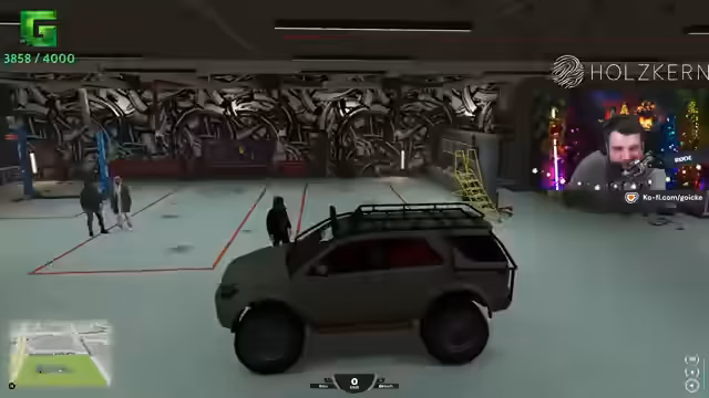 05:08:05Der Streamer erwähnt, dass er seinen Hund für eine 'Probenacht' vor Silvester weggibt, was ihn emotional belastet. Anschließend folgt eine längere Tuning-Sitzung für ein Fahrzeug (vermutlich ein Sandking). Es werden detaillierte Entscheidungen über Farben (mattschwarz, oliv), Karosserieteile (Frontstoßstange, Seitenschweller, Heckspoiler), Räder, Innenraum (Sitze, Armaturenbrett), Motor (Turbo) und Zubehör (Antenne, Schnorkel, Überrollkäfig) getroffen. Besondere Aufmerksamkeit erhält die Regenbogen-Unterbodenbeleuchtung und die Diebstahlsicherung.