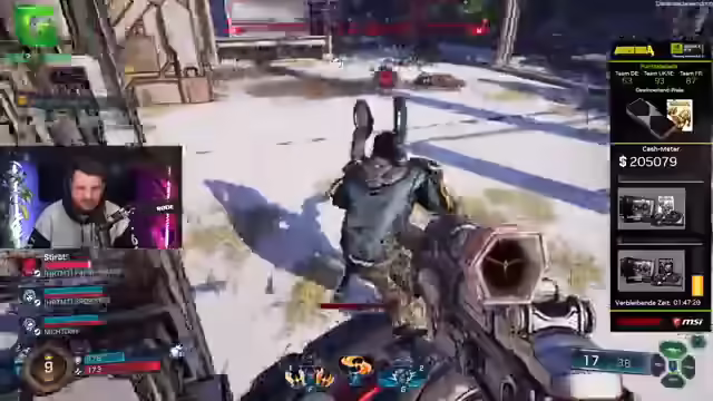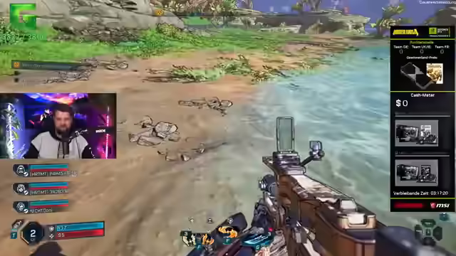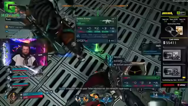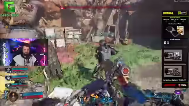 01:51:21Das Team einigt sich darauf, bis zum zweiten Boss zu spielen und danach Nebenmissionen für zusätzliche Punkte zu erledigen. Eine direkt sichtbare Nebenmission wird diskutiert, aber entschieden, sie vorerst zu ignorieren. Es wird ein Verkaufsautomat entdeckt, um Schrott zu verkaufen. Die Frage nach dem Spaß im Chat wird gestellt, und es wird festgestellt, dass die Mimik des Gegenübers auch ohne Sichtkontakt bekannt ist. Ein Teammitglied ist zu langsam beim Looten, was zu einem schnellen Kill durch ein anderes Teammitglied führt. Es wird an die Nutzung der Ults erinnert. Ein Teammitglied benötigt Hilfe und wird wiederbelebt. Es wird über gute Waffen von bestimmten Gegnern gesprochen und festgestellt, dass eine bessere Waffe gefunden wurde, obwohl ein Teammitglied kein Sniper ist. Ein blaues Schild wird als nützlich erachtet. Die Punktzahl des Teams wird mit der des Teams UK verglichen, wobei der Cash als wichtiger Faktor für das Freischalten von Preisen hervorgehoben wird.