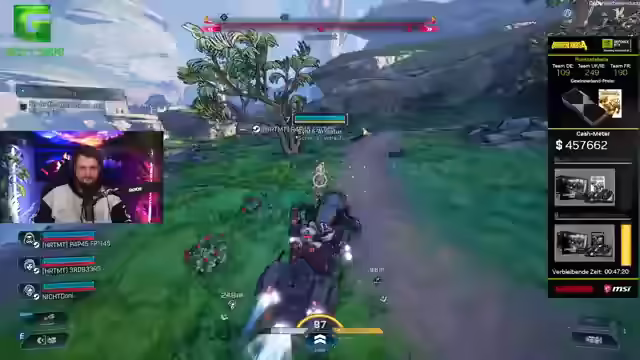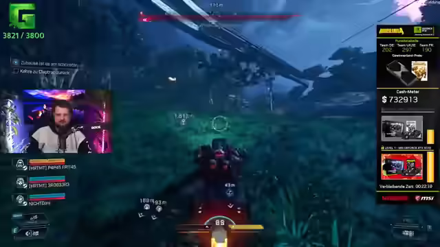 00:44:21Es wird die Teilnahme an einer Borderlands-Kooperation mit Team Deutschland, Team UK und Team Frankreich angekündigt. Es wird erklärt, dass die Zuschauer durch das Sammeln von Punkten Preise freischalten können. Die Commands für die Emotes werden aktiviert und das Cash Meter erklärt, welches den erspielten Betrag anzeigt. Ziel ist es, so viel Cash wie möglich zu erspielen, um Gewinne für die Zuschauer zu erhalten. Es wird ein stabiles Team angekündigt und überlegt, welche Charaktere gespielt werden sollen. Die Zuschauer werden nach Geheimtipps gefragt, wo es viel Geld oder Quests gibt, die hohe Belohnungen bieten. Es wird ausdrücklich erlaubt, zu spoilern, um dem Team zu helfen. Es wird klargestellt, dass das wiederholte Farmen desselben Bosses nicht erlaubt ist, da es langweilig wäre und einen unfairen Vorteil verschaffen würde. Die Zuschauer können durch das Schreiben von "Borderlands 4xDLSS4" im Chat an einem Giveaway teilnehmen. Es wird darauf hingewiesen, dass das Spamen des Wortes nicht erlaubt ist und zur Disqualifikation führen kann. Es wird nachgefragt, ob es noch Sub-Gifts gibt, die ein spezielles Borderlands-Icon im Chat freischalten.