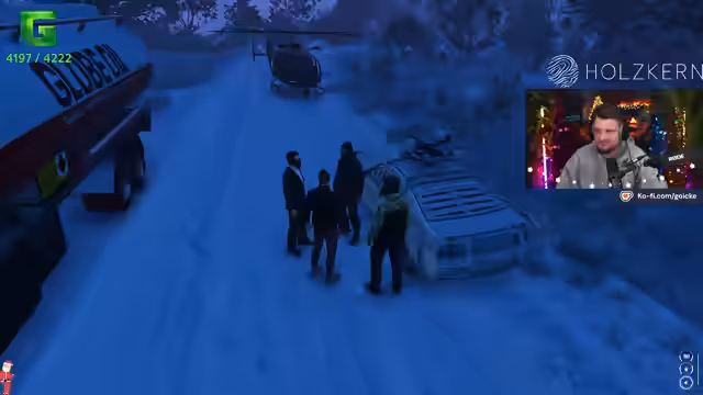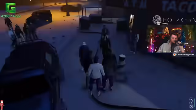 01:13:44Der Streamer und seine Begleiter diskutieren eine Gruppe, die Menschen an Geldautomaten ausraubt und ihnen mit Waffen droht. Sie identifizieren Verantwortliche und vermuten, dass Luis Kane und Jeremy Decker beteiligt sind. Es kommt zu einer Konfrontation, bei der der Streamer die Beteiligten bedroht, da sein Name gefallen ist und sie mit schwarzer Kleidung und Masken gesehen wurden.