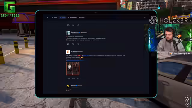 Ein GTA V Spieler startet den Tag mit einem vergessenen Meeting und Rechnerproblemen. Nach dem Essen gibt es eine Diskussion über Tankregeln und Discord-Timeouts. Technische Schwierigkeiten und eine Holzkern-Partnerschaft werden angesprochen, bevor über Autos und Farbkombinationen gesprochen wird. Das bevorstehende Meeting sorgt für Unmut.