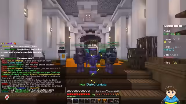 00:03:18Der Fokus liegt auf dem Fortschritt des Statuenbaus für Craft Attack. Es wird berichtet, dass gestern erhebliche Fortschritte am Arm der Statue erzielt wurden, welcher heute fertiggestellt werden soll. Streamer gommehd zeigt den aktuellen Stand des Arms, der bereits komplett ist, und erklärt, dass der schwierige Teil nun der Kopf und das Schwert sind, das der Arm halten soll. Er erwähnt, dass trotz der Halloween-Stimmung der Bau Priorität hat und er weiterhin motiviert ist, das Projekt voranzutreiben. Gleichzeitig wird auf technische Probleme auf anderen Servern angespielt, die aber den eigenen Stream nicht beeinträchtigen.