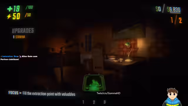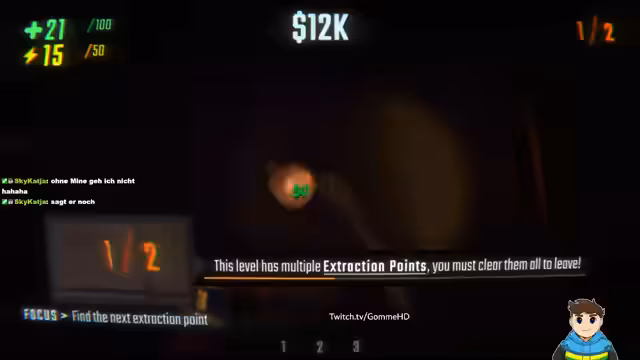 02:53:17Der Spieler betritt ein neues Level und versucht, schneller zu spielen, obwohl er damit rechnet, zu sterben. Er entdeckt wertvolle Gegenstände wie eine Krone und versucht, sich zu verstecken. Er fragt sich, wie er sich schleichen kann, ohne zu sprinten, und entdeckt, dass er mit 'Q' in den Schleichen-Modus wechseln kann. Er findet weitere wertvolle Gegenstände und einen Diamanten. Er sammelt weiterhin Gegenstände und bringt den Schatz zum Extraction Point. Er begegnet einem dicken Monster, das langsam ist, und freut sich über den Abschluss des Levels. Er erhält weiteres Geld und überlegt, ob das Spiel gruseliger ist, wenn man alleine spielt. Er findet weitere wertvolle Gegenstände, darunter eine Lavalampe und Bücher, die jedoch keinen Wert haben. Er begegnet erneut einem Auge, das ihn beobachtet, und versucht, es zu umgehen.