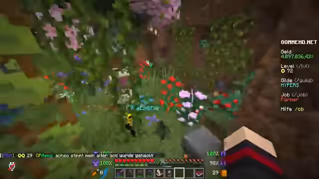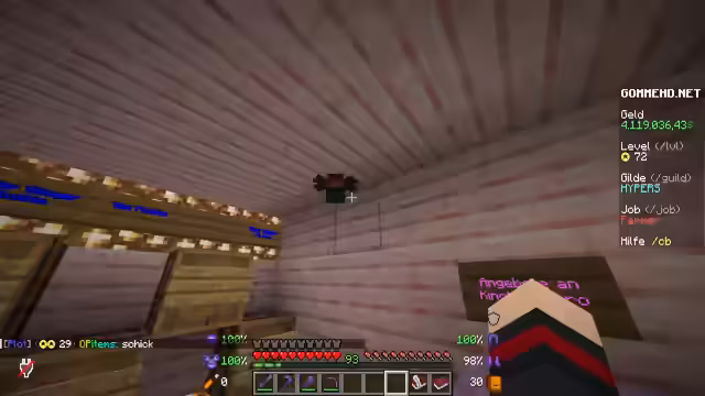 00:28:39Der Streamer schaltet einen weiteren Menüpunkt frei, die Settings. Er lehnt das Angebot ab, für 50 Level ein Spawn-Ei zu kaufen. Stattdessen begibt er sich zur Kartoffelfarm von Sebo, um dort zu leveln. Er erfährt, dass er eine Hacke benötigt, um die Kartoffeln abzubauen, ohne sie zu zerstören. Er erinnert sich an den Shopping Gang beim Hub, wo er solche Hacken kaufen konnte. Der Streamer trifft Mr. Ballgame und spricht mit ihm über alte Zeiten und gemeinsame Minecraft-Erlebnisse. Mr. Ballgame empfiehlt ihm, in Skyblock zu spielen, da dort die Farmen besser geladen werden als in Stone. Der Streamer ist hin- und hergerissen, ob er in Stone bleiben oder nach Skyblock wechseln soll. Er fragt nach einer Hacke für die Kartoffeln und wird von Huibu zu den Villagern geführt, wo er die Hacke und Verzauberungen kaufen kann.