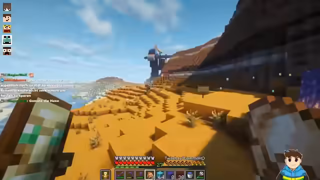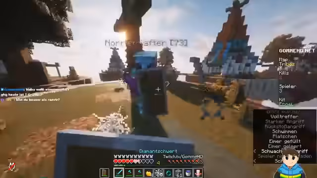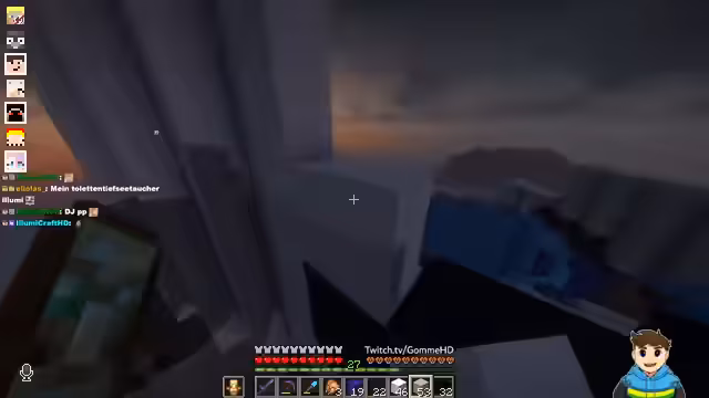 00:07:31Der Streamer teilt eine lustige Anekdote von gestern Abend, als Trimax ihn im Spiel besucht hatte, während er hochkonzentriert am Bauen war und Musik hörte. Er hatte Trimax, der sogar auf seinem Happy Ghast saß und ihn ansprach, komplett ignoriert. Er beschließt, den entsprechenden Clip aus Trimax' VOD im Stream zu zeigen, um die Situation zu verdeutlichen. Während der Wiedergabe des Clips wird bekannt, dass Hugo die Community raidet. Der Streamer beschließt, sich dem anzuschließen und im Community-Server für Chaos zu sorgen. Er öffnet das Trollmenü und aktiviert PvP, um die Spieler zu unterhalten. Es stellt sich heraus, dass Hugo gebannt wurde und einen anderen Account benutzt, um zu trollen. Der Streamer gibt Hugo Creative-Modus, was zu weiteren chaotischen Szenen führt, darunter das Platzieren von TNT.