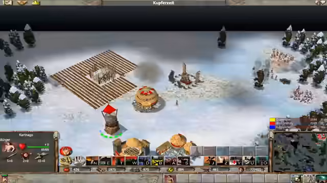 01:20:18Die Bronzezeit wird erreicht, was neue Gebäude und Einheiten ermöglicht. Es werden Bürger ohne Ende produziert und für die Rohstoffgewinnung eingesetzt. Eine neue Eisenquelle wird benötigt. Es wird ein Lager für die Rohstoffe gebaut. Die Einheiten werden zur Patrouille geschickt. Ein Erdbeben wird eingesetzt, um die Mauern der Gegner zu zerstören. Die Pest wird auf die Priester der Gegner losgelassen. Es wird ein Angriff von den Gegnern abgewehrt. Es werden Türme gebaut, um die Basis zu verteidigen. Es werden neue Krankenhäuser gebaut, um die Truppen zu heilen. Es fehlt an Stein. Eine neue Steinquelle wird gefunden. Es wird Empire Earth gespielt, ein Spiel, das früher gerne gespielt wurde. Die Zivilisation ist vorne. Es wird ein Stützpunkt für Waffen und Truppen gebaut. Eisen und Stein sind ein Problem. Es wird geplant, Blau zu verdrängen. Die Einheiten werden verstärkt. Ein Vulkan wird eingesetzt, um die Gegner zu schwächen. Es werden Elefanten zum Einreißen der Mauern eingesetzt. Es werden Priester und Propheten benötigt. Gold und Eisen fehlen für den Fortschritt. Es wird geplant, Blau anzugreifen, um an Gold zu gelangen. Eine Goldquelle wird gefunden. Es wird ein Erdbeben eingesetzt, um die Mauern der Gegner einzureißen. Ein Vulkan wird eingesetzt, um die Gegner zu schwächen. Die Mauern der Gegner halten viel aus. Es werden mehr Bogenschützen benötigt. Die Türme werden repariert. Die Computergegner zeigen ihr wahres Gesicht. Die Elefanten sind sehr stark. Die Einheiten werden zur Goldquelle geschickt. Es wird ein Krankenhaus gebaut. Das Verhalten der Priester wird auf Angriff gesetzt.