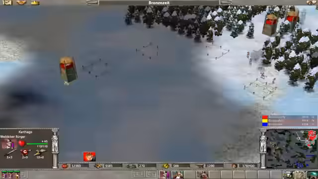 02:25:57Ein Angriff auf gegnerische Türme und Siedlungen beginnt. Die KI des Spiels wird als sehr gelungen beschrieben. Die Ressourcen, insbesondere Gold und später Eisen, sind für den Aufbau von Armeen und für Forschungen entscheidend. Ein Militärarsenal wird erweitert, um im Kampf gegen den Gegner Gelb effektiv zu bleiben und in die Renaissance vorzustoßen.