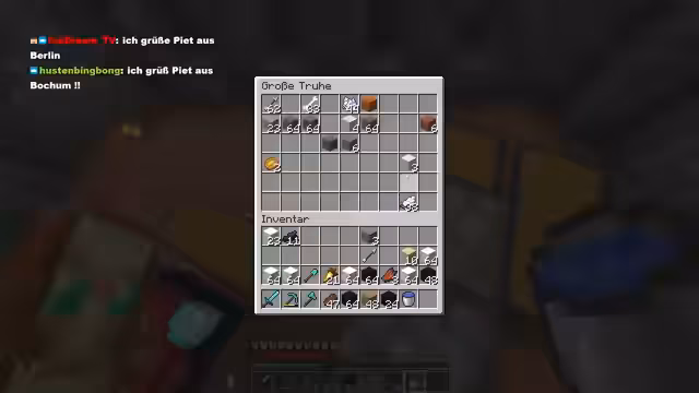00:02:39Mit den gesammelten Ressourcen beginnt der Bau einer Statue aus schwarzem Beton. Während des Baus bemerkt der Streamer, dass ihm die schwarzen Blöcke ausgehen, was ihn zu einem Abstecher in eine Höhle zwingt, um nach mehr Material zu suchen. In der Höhle wird er von anderen Spielern wie Hugo und Mr. Moor gesichtet, was zu einem kurzen PvP-Intermezzo führt. Nachdem er seine Beute sicher in der Base eingelagert hat, konzentriert er sich wieder auf die Fertigstellung der Statue.