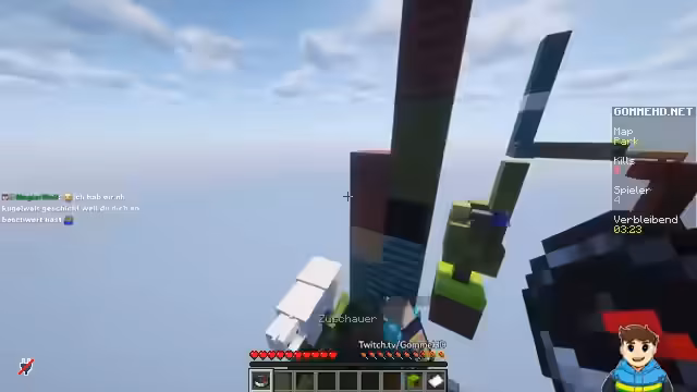 01:52:03Nach der chaotischen Eröffnung des Eiffelturms und der Sprengung herrscht weiterhin Verwirrung. Die Spieler versuchen, den beschädigten Turm zu erklimmen, wobei der Aufzug erst später eröffnet werden sollte. Der Streamer ist frustriert über die Ereignisse und die Schwierigkeiten, die sich ihm in den Weg stellen. Er beantragt sogar die Bannung der vermeintlichen Verantwortlichen für die Sprengung. Die Stimmung ist gedrückt, und der Streamer beschließt, sich vorerst von Craft Attack abzuwenden, um in Minigames wie Skywars etwas Ablenkung zu finden und seine Laune zu verbessern. Er plant, die Glaskugeln der Statue offline fertigzustellen, da die aktuelle Vorlage und die Komplexität des Bauvorhabens im Stream zu viel Frustration verursachen.