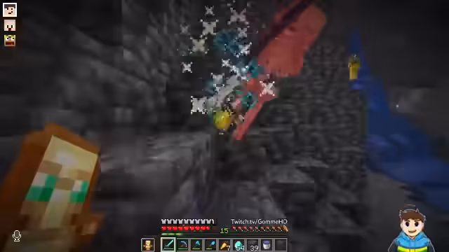 00:15:55Der Streamer und Alfie wechseln Glück und Verzauberungen aus. Der Streamer erhält Wasseraffinität für Alfie im Tausch gegen einen Glückstrank. Danach fliegt der Streamer, mit Harpune ausgerüstet, in die Ferne, um ungelootete Höhlen zu finden. Ziel ist es, Diamanten und Level zu farmen. Dabei stößt er auf ein Eis-Biom, das seine Ressourcenplanung erweitert.