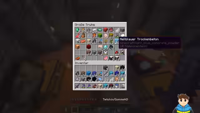 01:44:24Für den weiteren Bau werden noch Ressourcen benötigt, insbesondere Gravel. Nachdem diese schnell beschafft werden, macht der Streamer eine kurze AFK-Pause. Bei der Rückkehr stellt er fest, dass er auch noch Fichte, Spruce und hellblauen Farbstoff benötigt. Er beschließt, diese Materialien bei Blizzard zu holen, da er diesen bei seinen Bäumen vermutet.