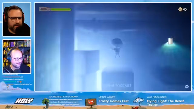 00:54:51Der Stream konzentriert sich auf das Frosty Game Fest, eine australische Spielepräsentation. Die ersten gezeigten Spiele sind sehr unkonventionell und skurril, was bei den Streamern für Verwirrung und Amusement sorgt. Sie erwähnen Titel wie 'Arise, My Champion' ein Match-three Romance-Dating-Simulator mit Monstern und 'Nullstar Solace', ein Action-Plattformer. Die Stimmung im Stream ist gemischt; einige Spiele werden als 'ekelhaft' oder 'merkwürdig' abgetan, während andere für ihren einzigartigen Stil gelobt werden, wie z.B. ein Spiel über eine Assel und ein Mops-Spiel.