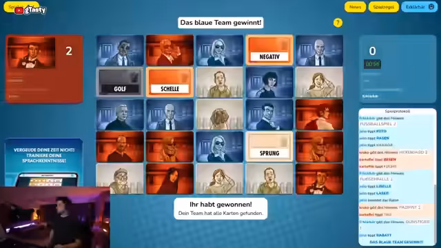 04:32:43Nach dem Among Us-Stream schlägt Streamer ein neues Spiel namens 'Erklärbär' vor, das in einem Browser gespielt wird. Das Prinzip des Spiels wird den Zuschauern schrittweise erklärt: Zwei Teams versuchen, durch umschreibende Wörter die eigenen Begriffe zu erraten, ohne das gefürchtete 'schwarze Wort' zu nennen. Es wird eine Testrunde mit G-Tasty organisiert, bei der die Logik des Spiels intensiv getestet wird. Nach einigen organisatorischen Problemen und fehlenden Spielern kann eine Runde beginnen, die Spannung und Teamwork erfordert.