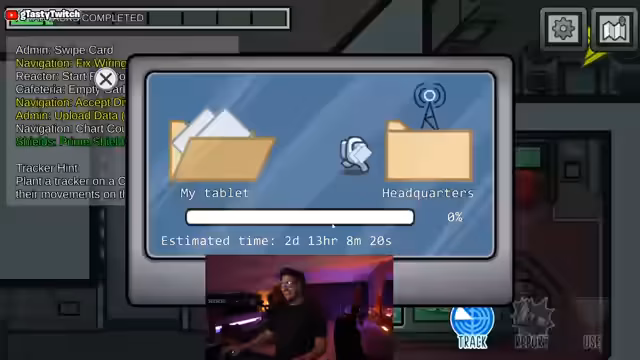 01:01:08Während des Streams stellt der Streamer fest, dass sein Steam-Account gehackt wurde und er das Spiel Among Us nicht mehr öffnen kann. Es bricht ein chaotisches Gespräch im Discord über Steam-IDs, Codes und den Kauf des Spiels aus. Trotz der technischen Probleme und Streitigkeiten über den Kauf startet die Among Us-Runde mit einem Squad aus Eli, Eldos, Edis und anderen, wobei der Streamer den Chat während des Lebens verbietet.