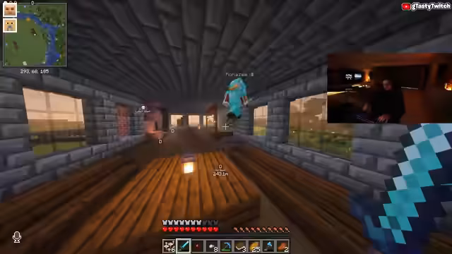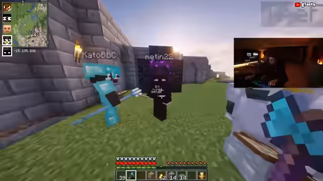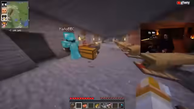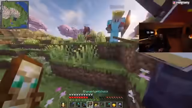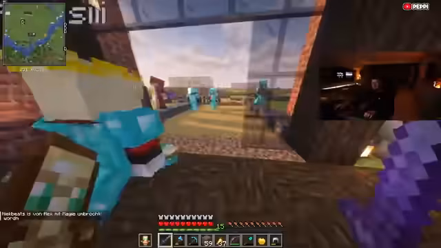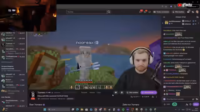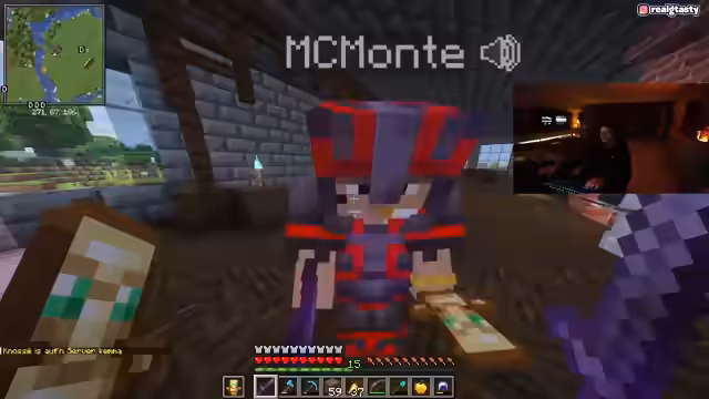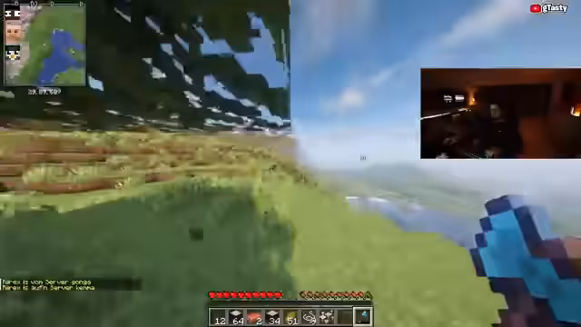 00:12:28Der Streamer wechselt zu Minecraft und schließt sich den Spielern an, darunter Knossi und Jens. Es entstehen humorvolle oder konflikthafte Interaktionen, wie der Vorwurf, ein gestohlenes Buch sei in Jens' Inventar, oder das Erkunden von Grundstücken und Häusern. Der Streamer erkundet die Welt, sammelt Ressourcen und diskutiert über die Einrichtung eines 'Kaiserreichs' mit einem zentralen Rathaus auf der Zugspitze. Hier zeigt sich der lockere, rollenspielorientierte Charakter des Streams, bei dem Bau und Gemeinschaft im Vordergrund stehen.