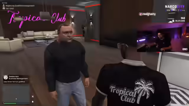 01:27:08Der Stream wandelt sich in ein intensives Rollenspiel im Kontext von GTA RP. Der Streamer agiert unter dem Alias 'Santanga Tangelius', ein mexikanischer Gangster, der als 'mächtigster Mann auf der Insel' auftritt. Er verwickelt zufällige Mitspieler in Streitgespräche, versucht Frauen abzuwerben und erpresst andere virtuelle Charaktere. Die Szenerie ist geprägt von Machtdemonstrationen und absurden Drohungen.