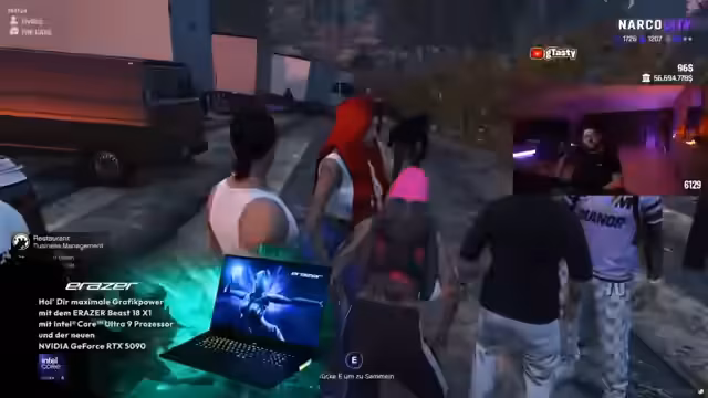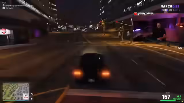 02:30:30Ein szenischer Wechsel führt zu einer chaotischen Verfolgungsjagd, bei der gtasty vor der Polizei flieht. Es werden verschiedene Fahrzeuge genutzt, darunter auch ein modifizierter Lowrider. Die Situation ist angespannt und gtasty äußert seine Sorge über die Kontrolle über das Fahrzeug. Die Polizei, in Form von Fahrradpolizisten, wird lächerlich gemacht, da sie den Fluchtenden nicht gewachsen sind.