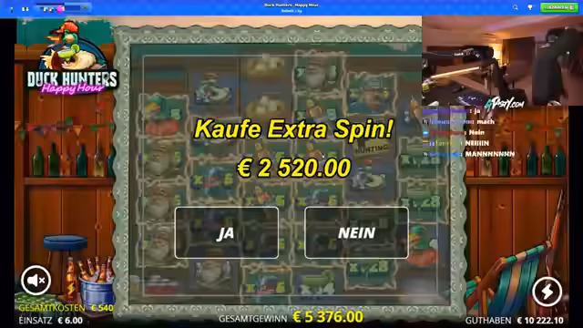 03:53:52Da das Novomatic-Spiel nicht funktioniert, wechselt der Streamer das Spiel und wählt eine niedrigere Einsatzlinie, um Verluste zu minimieren. Er wechselt zu Ente und möchte hier einen Gewinn erzielen. Er spielt weiter und bleibt bei seinem hohen Einsatz, um zu einem Gewinn zu kommen. Es wird klar, dass er trotz Verlusten anspielt.