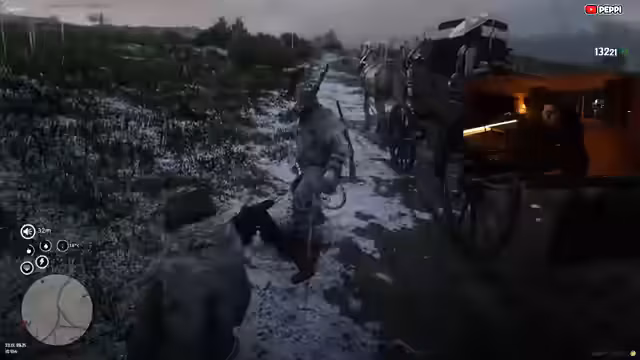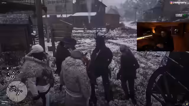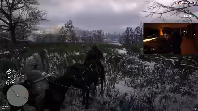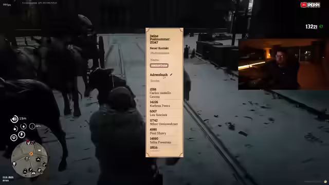 01:29:44Der Rollenspiel-Teil des Streams startet mit der Ankündigung, dass der gewählte Server die höchste Frauenquote in der Red Dead Redemption Szene hat. Es folgt der Einstieg in den Server, diskutiert mit dem Chat die Server-Performance und die Grafikeinstellungen. Nach technischen Anpassungen wird das Pferd gerufen und die Umgebung erkundet, wobei die beeindruckende Grafik auch bei dem sieben Jahre alten Spiel hervorgehoben wird.