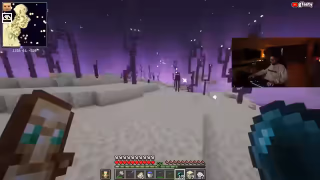 00:34:54Der Streamer kündigt an, dass heute das große Finale des Minecraft-Spiels stattfinden soll. Er und ein Mitspieler namens Fabo begeben sich in das Ende, um den Enderdrachen zu jagen. Die Herausforderung besteht darin, sich von Insel zu Insel zu bewegen, Blöcke und Enderperlen als Werkzeuge zu nutzen und gleichzeitig einen tödlichen Sturz in den Abgrund zu vermeiden. Der Streamer legt großen Wert auf eine sorgfältige Vorbereitung und viele Ressourcen, um sicherzustellen, dass alles glatt läuft.
