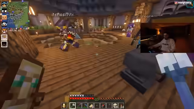04:02:48Das Kaiserreich wird von Feinden massiv angegriffen, die Raketen und TNT einsetzen, um Basisstrukturen zu zerstören. Es kommt zu unkoordinierten Verfolgungsjagden und Verwirrung über die Aufenthaltsorte der Gegner. Die Angreifer nutzen Taktiken wie das plötzliche Platzieren von Lava, was zu erheblichen Schäden und Frustration im eigenen Team führt. Die Verteidiger sind durch ständige Nadelstiche und das Fehlen von Ressourcen wie Tränke und TNT in die Defensive gedrängt.