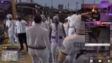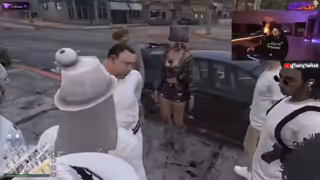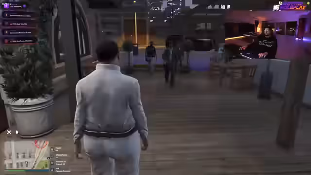01:41:20Die Situation spitzt sich weiter zu, als der Streamer und seine Gruppe den Barbesitzer René gewaltsam aus seiner Bar entfernen. Ein anderer Gast ruft daraufhin die Polizei. Als die Polizei eintrifft, eskaliert die Situation erneut. Der Streamer wird gefesselt und aus dem Geschäft gezogen, da er sich als Deputy Director ausgibt, aber seine Dienstlegitimation nicht nachweisen kann. Der Streamer fühlt sich von den Behörden übergangen und bedroht.
