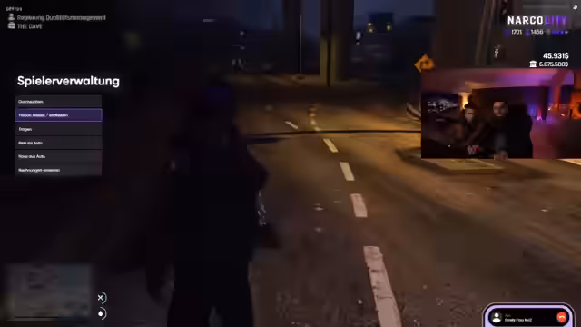 01:17:51Nach der Vorstellung diverser Rollenspiel-Charaktere, darunter Marquez, Peppy und Sosa, beginnt eine neue Spielsession. Marquez meldet sich als Patron zurück und droht den fiktiven Gangsterbanden 'Tangelius' und 'Santanga'. Doch es kommt zu zahlreichen technischen und inhaltlichen Verwirrungen, wie etwa plötzliche Charakterwechsel und unnötig harte Dialoge. Die geplante 'Cave-Party' dropt zu scheitern, da der angekündigte DJ nicht erscheint.