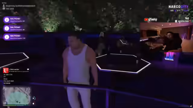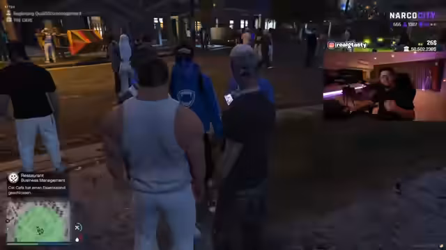 08:58:41Nach der Konfrontation im Tropical sucht der Streamer den Spieler Tommy Boy zu einem ernsten, privaten Gespräch unter vier Augen auf. Er fordert Tommy Boy auf, mit ihm zu kommen, während andere Anwesende wie 'Happy' weggeschickt werden. Der Streamer ist sichtlich aufgeregt und muss 'eine Sache mit Tom alleine besprechen', was auf eine persönliche und wahrscheinlich emotionale Auseinandersetzung hindeutet, die unabhängig von den kriminellen Aktivitäten ist.