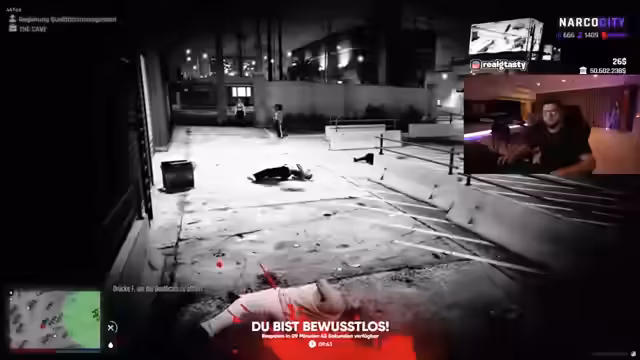 08:34:52Die Spannung eskaliert erneut, als der Streamer in einen direkten Konflikt mit einem anderen Spieler gerät, den er als 'Bastard' und 'Arschkind' bezeichnet. Beide Parteien drohen sich physisch anzugreifen, und der Streamer fordert den anderen auf, 'ein Mann zu sein und ihn zu schlagen'. Daraufhin kommt es zu einer wilden Verfolgungsjagd durch die Stadt, während der Streamer gleichzeitig versucht, seinen verletzten Kameraden 'Tommy Boy' zu retten und aus dem Gefahrenbereich zu bringen.