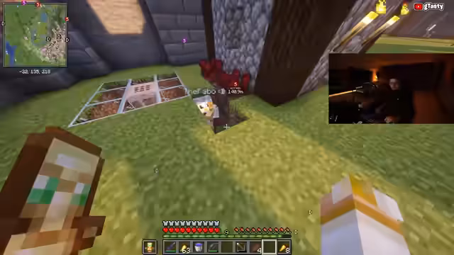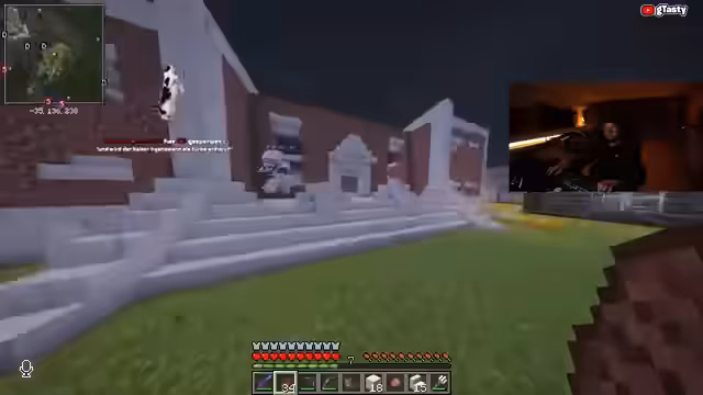 03:05:42Praktische Bauprozesse dominieren: Quarz- und Ziegelbeschaffung wird organisiert, während Materialknappheit (fehlender Lehm, Glas) beklagt wird. Diebstähle von Eisen und anderen Ressourcen aus gemeinsamen Farmen führen zu Frustration. Ein Spieler ('Rohat') wird beschuldigt, einen Golem gestohlen zu haben. Gleichzeitig werden Logistiken für große Bauvorhaben geplant, etwa eine unterirdische Grube für das Casino, die mit TNT oder Manueller Arbeit aufwendig vorbereitet werden muss.