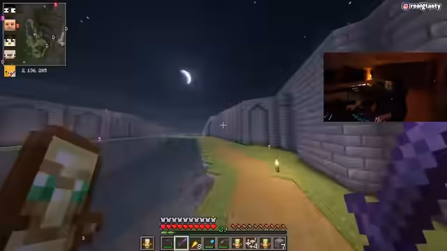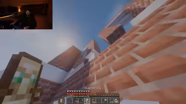 07:38:47Letzte Bauarbeiten am Rathaus werden koordiniert, wobei Quarz als wichtiges Material für Wiederherstellungen nach möglichen Angriffen identifiziert wird. Parallelen zum Craft Attack Event werden gezogen. Der Streamer reflektiert über die anstrengenden letzten Streaming-Tage und kündigt an, bald zu beenden, während weiter über die Einladung neuer Spieler (Wallabilla, Trimex, Noriax) und Server-Zukunft diskutiert wird.