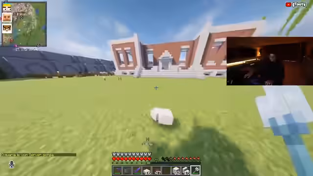 01:44:16Während des Rathausbaus kommt es zu Beschwerden über Flaggen und Türme in der Nachbarschaft, die als störend empfunden werden. Diskussion über eine mögliche Krisensitzung der Server-Community um 21 Uhr. Zeitgleich werden Bepflanzungen auf dem Grundstück mehrfach zerstört, was Frustration auslöst. Es folgt die Übergabe des Dreizacks an den Kaiser, der jedoch erst im Wasser verzaubert werden muss. Der Bau des Rathauses schreitet voran, wobei auch Innenarchitektur (Balkon, geheimer Kerker) geplant wird.