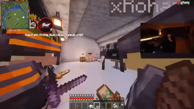 08:22:07Emotionale Auseinandersetzungen um zerstörte TNT-Farmen und Materialdiebstahl prägen diesen Teil. Der Streamer beschuldigt Mitspieler wie Schradin, die Farmen sabotiert zu haben, und kritisiert AFK-Zeiten für andere Spieler. Trotz 18-stündiger PC-Präsenz wurden große Mengen Gunpowder gestohlen. Die Diskussion eskaliert in Vorwürfen gegen 'Hyänen'-Spieler, die alles plündern, und endet mit pragmatischer Reparatur der Farm trotz Verlust von mehreren Stacks.